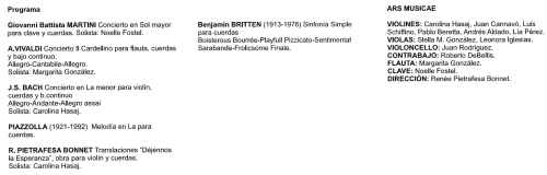 - Orquesta Ars Musicæ (J. B. Plaza, R. Pietrafesa Bonnet,